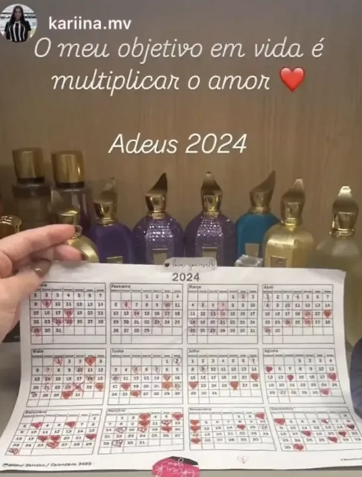 В календаре, который Карина разместила в социальных сетях, каждый день интимной жизни пары в 2024 году отмечен сердечками.