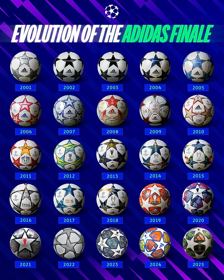 А вот, как менялись мячи для плей-офф ЛЧ с 2001 года: