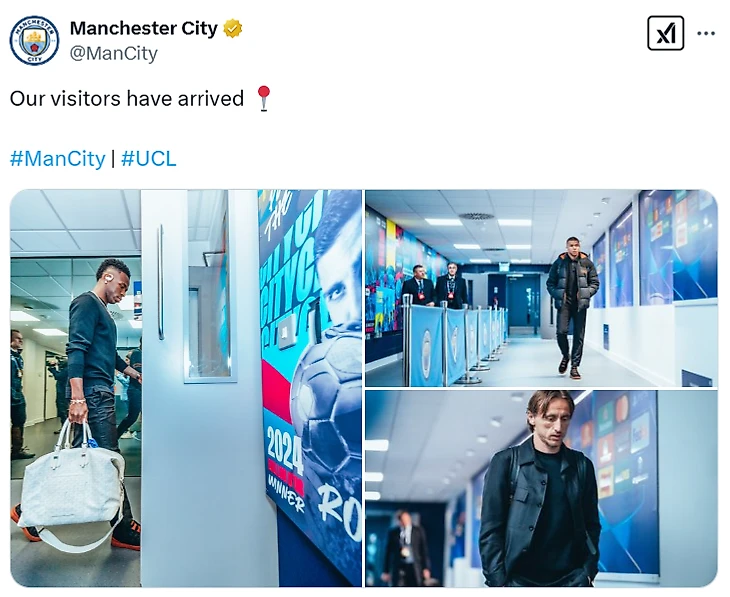 За пару часов до матча в официальном аккаунте клуба появился пост с тремя фотографиями игроков «Реала» на «Этихаде» и подписью: «Наши гости прибыли».