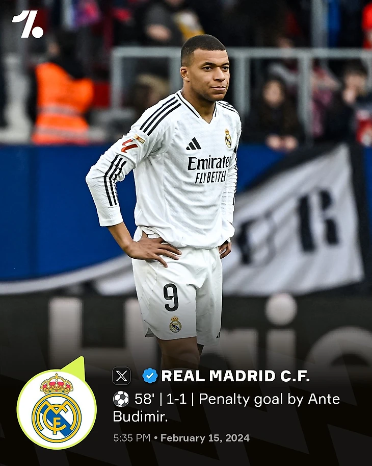 «Мадрид» не смог обыграть «Осасуну» в 24-м туре Ла Лиги, встреча закончилась ничьей 1:1. С 39-й минуты «сливочные» остались в меньшинстве из-за удаления Джуда Беллингема – арбитру Хосе Мунуэра Монтеро не понравилась обсценная лексика англичанина.