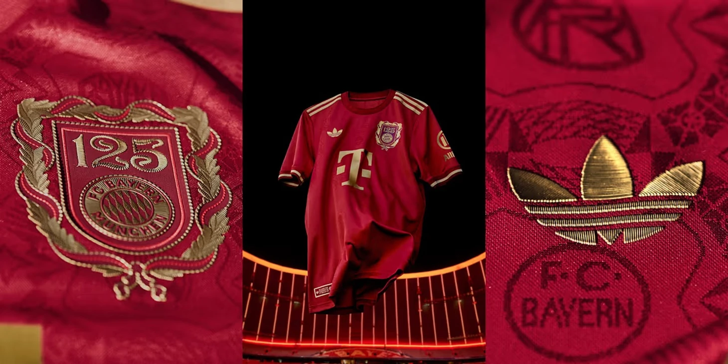 Джерси выполнено в красном цвете, с золотыми элементами дизайна. Ткань украшена историческими логотипами клуба, рядом с эмблемой «Баварией» красуется памятная дата, напоминающая о 125-летии.