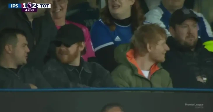 Эд Ширан присутствовал на трибунах стадиона «Портман Роуд» во время матча между «Ипсвич Таун» и «Тоттенхэмом» в минувшие выходные, и к нему присоединился неожиданный гость.