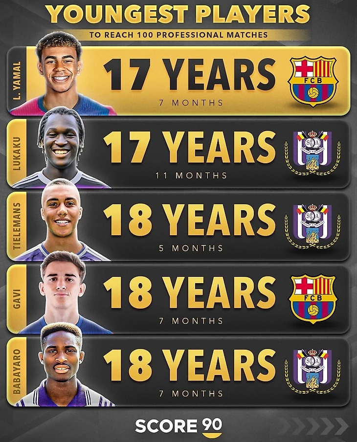 🔥 Топ игроков, которые провели 100 матчей в рекордно юном возрасте. Ламин первый, второе место точно удивит