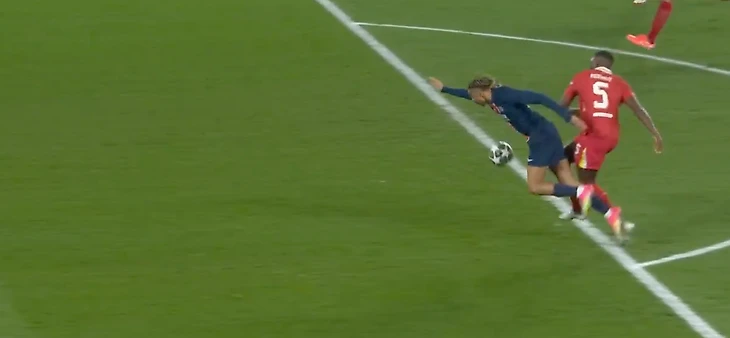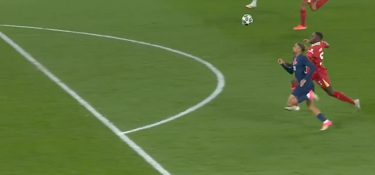 Барколя на ходу и скорости, мяч под его контролем, он выходит 1 на 1. В этот момент Конате просто толкает его в спину без попытки сыграть в мяч. Это не борьба корпус в корпус, это нарушение правил. При этом Барколя пытался удержаться на ногах, но был на скорости и упал без шансов.