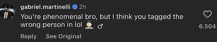 Звезда «Арсенала» прокомментировал пост, написав: «Ты феноменальный, брат, но мне кажется, ты отметил не того человека, лооол».