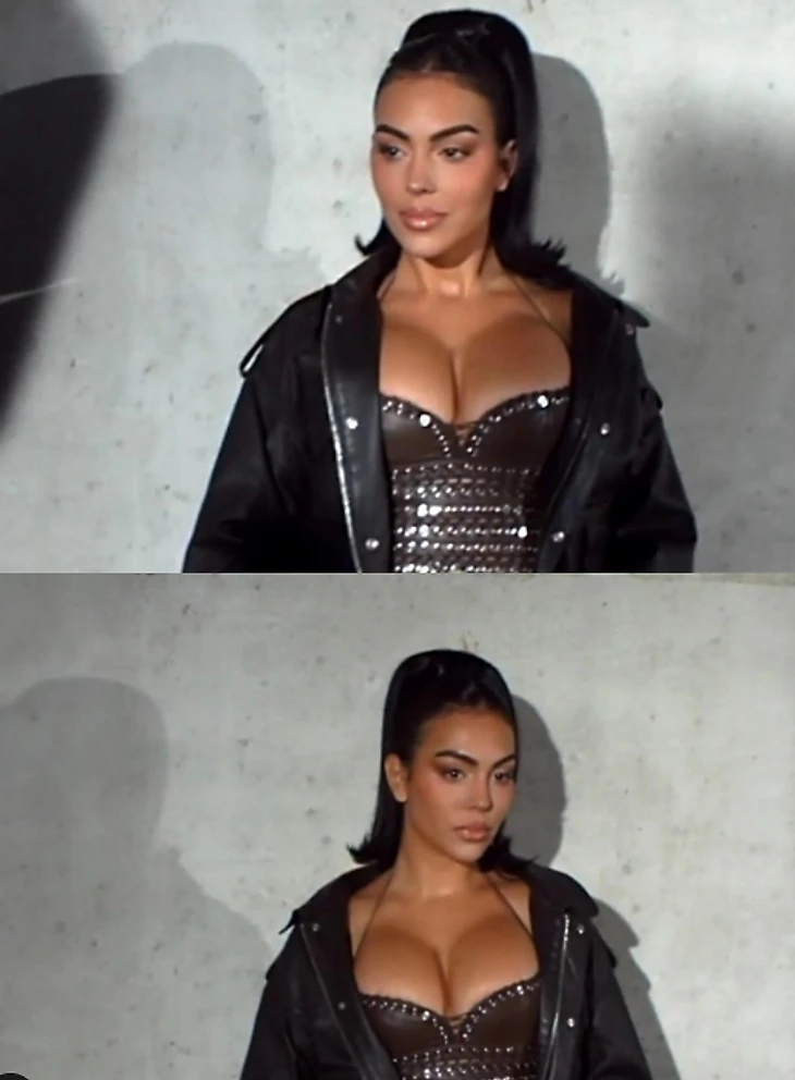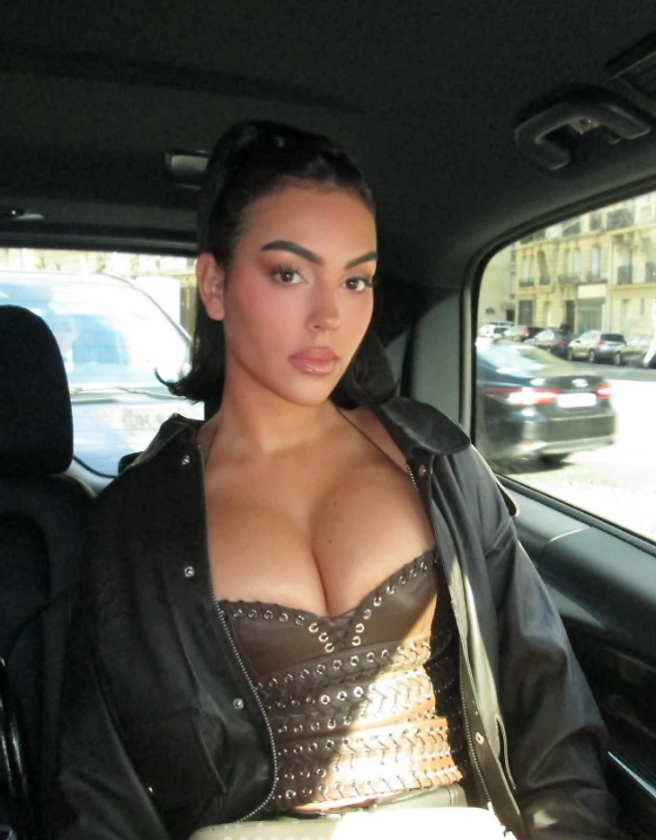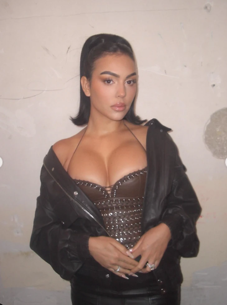 Возлюбленная Криштиану Роналду появилась на показе мод в кожаном наряде. Кажется, корсет Джорджина подобрала не по размеру:
