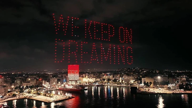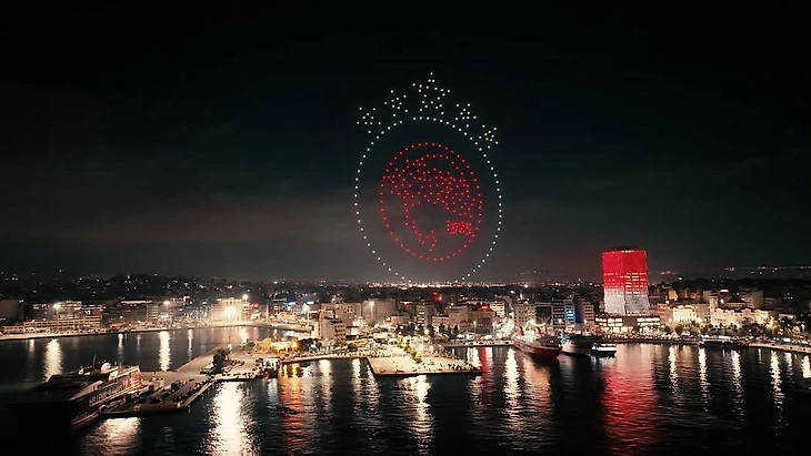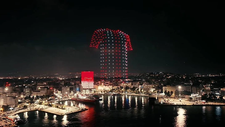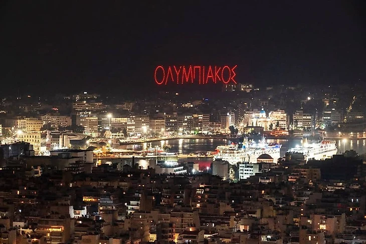 Греческий «Олимпиакос» с размахом отметил 100-летний юбилей клуба, устроив шоу дронов в небе над Пиреем.