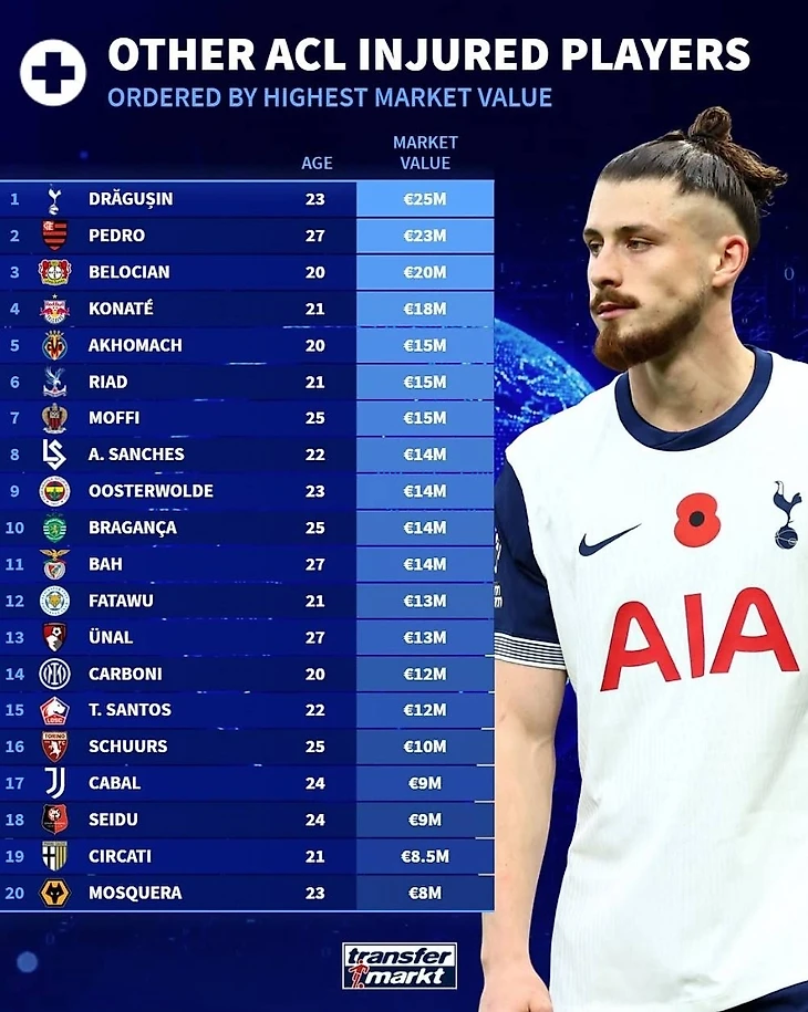 Сборная от Transfermarkt, которую не хотелось бы видеть: команда из людей, порвавших кресты в этом сезоне.