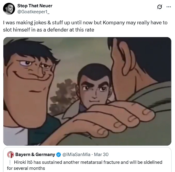 💭 «Компани после того, как за неделю травмировались три защитника: «Ладно. Я сделаю это сам».
