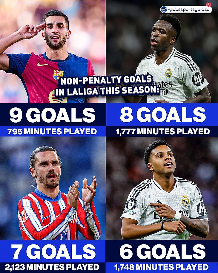 CBS Sports напомнил, что у Феррана в этом сезоне отличный показатель и по голам без учета пенальти. В чемпионате Торрес все свои мячи забил с игры – по голам без одиннадцатиметровых он обходит Винисиуса, Гризманна и Родриго.
