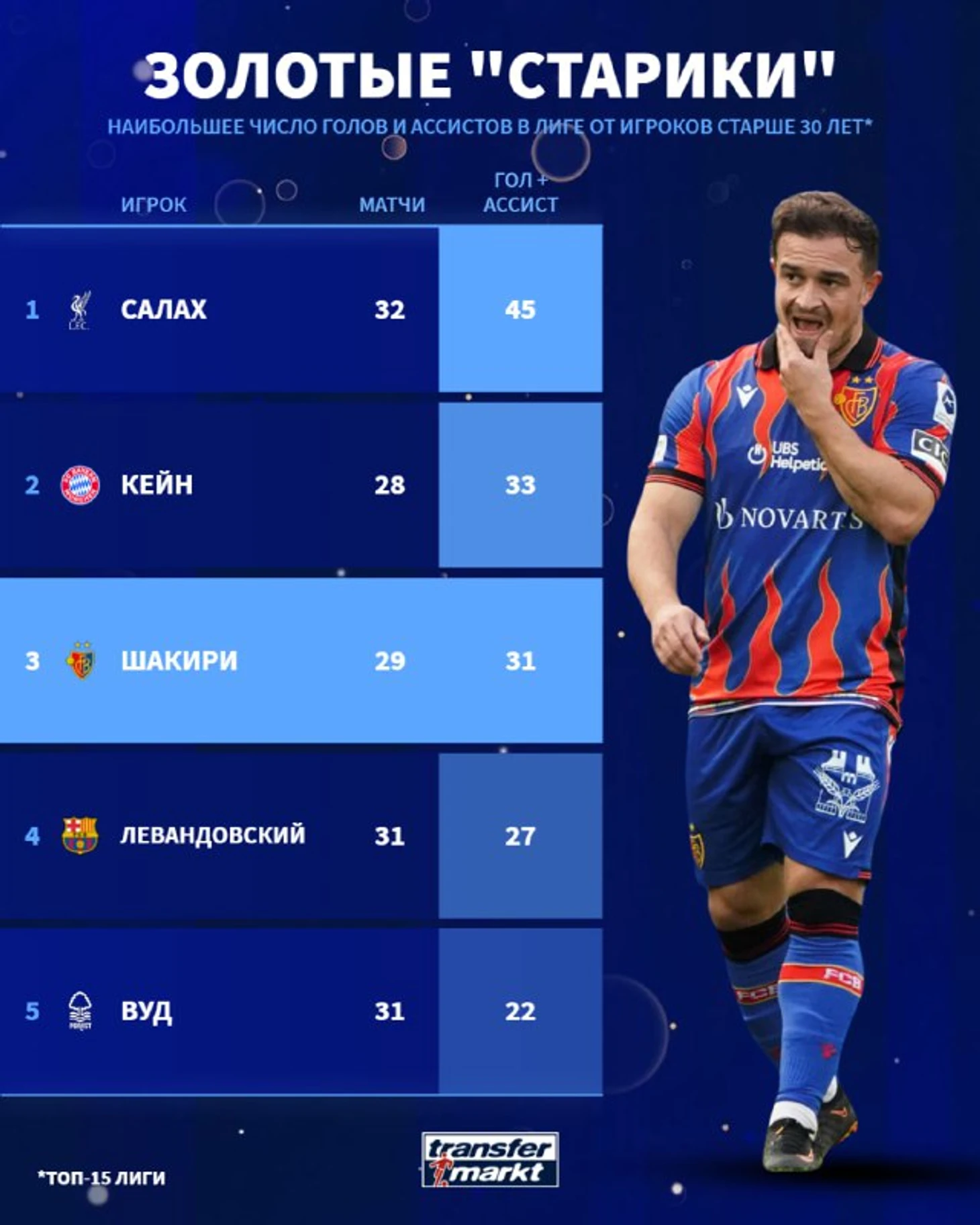 33-летний Джердан Шакири вернулся в родной «Базель», где чувствует себя совершенно прекрасно. В матче с «Ивердоном» полузащитник забил сам и сделал хет-трик из ассистов – всего за 32 встречи во всех турнирах швейцарец забил 16 голов и отдал 18 результативных передач.