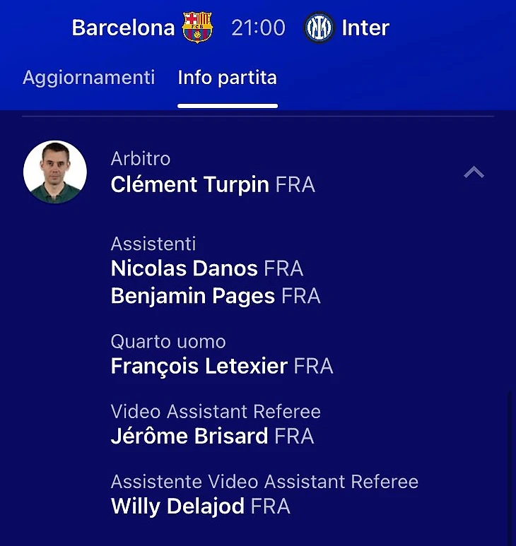 Первую встречу «Барселоны» и «Интера» в полуфинале Лиги чемпионов обслужит французская бригада арбитров во главе с Клеманом Тюрпеном. За VAR будут отвечать Вилли Делажо и Франсуа Летексье.