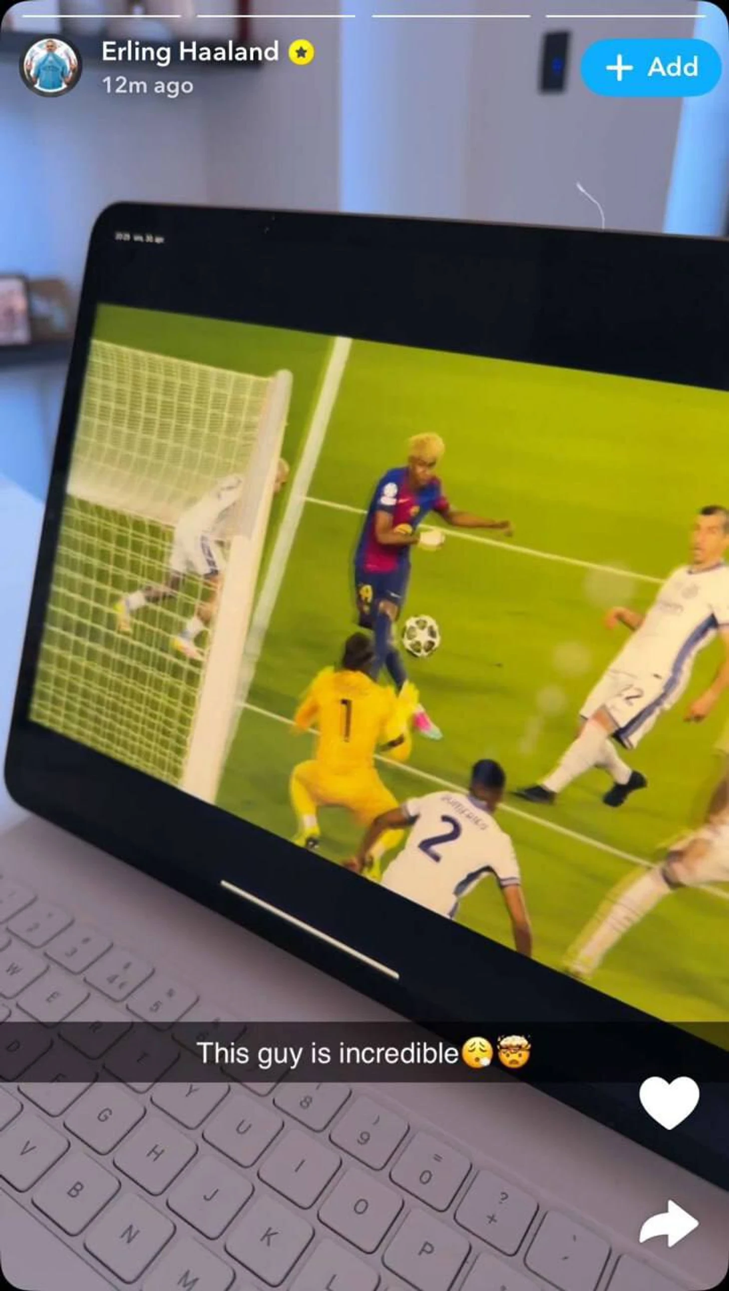 Форвард «Ман Сити» Эрлинг Холанд не скрывал восторг. Он выложил в сторис фото с моментом гола и подписал: «Этот парень невероятен».