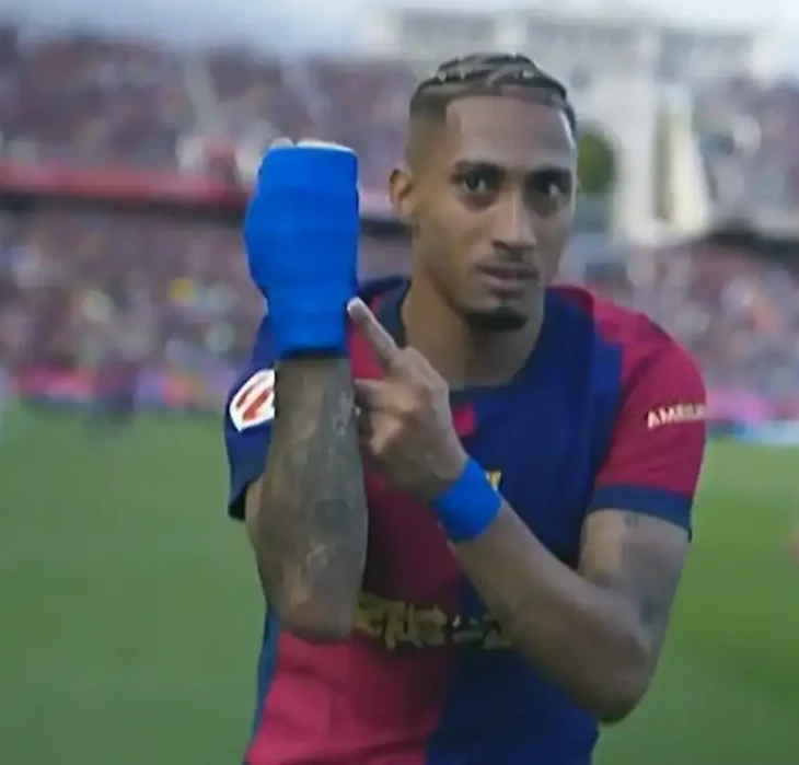 На этот раз это произошло на поле. Рафинья указал на повязку как после третьего, так и после четвертого гола, повторив жест.