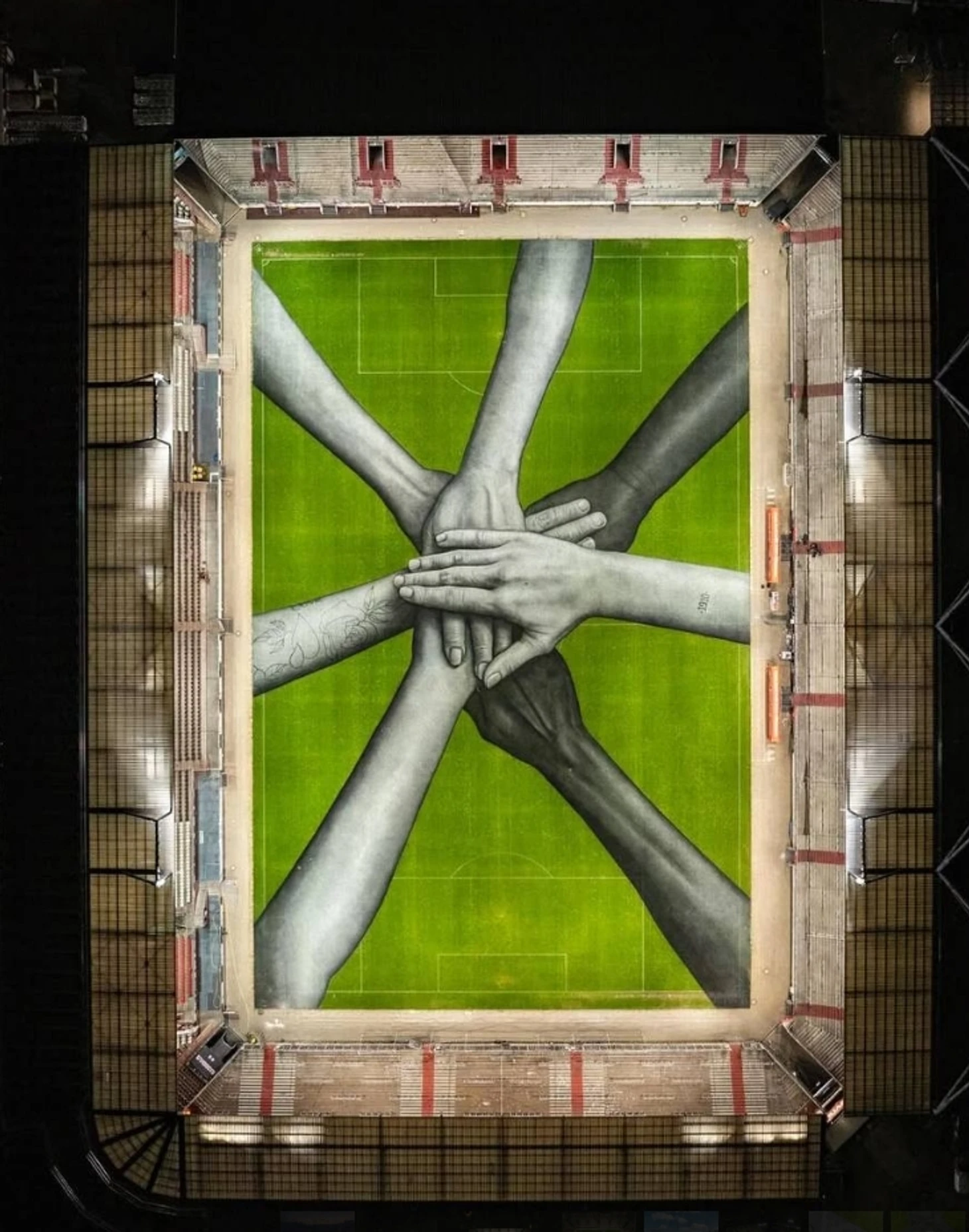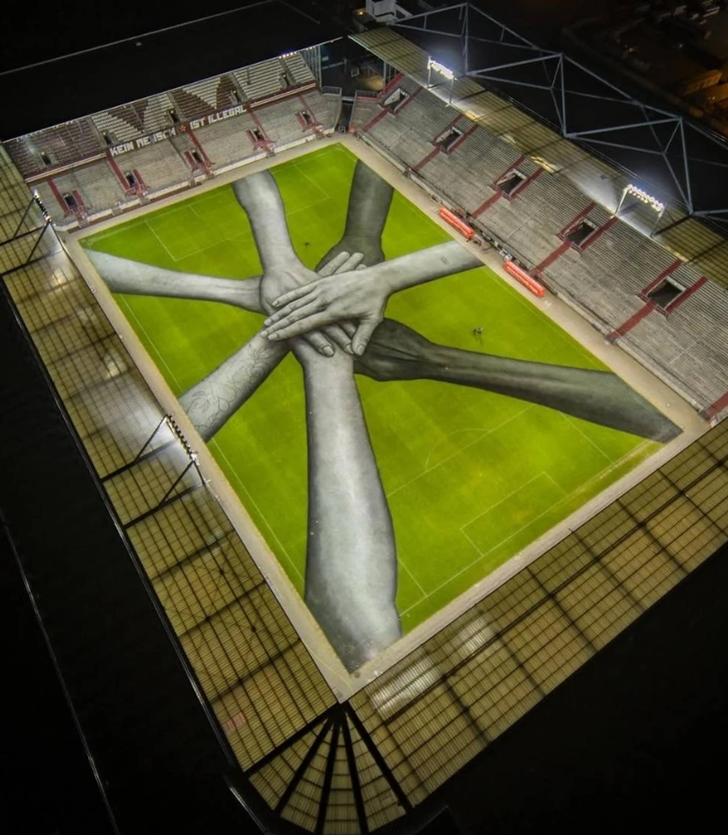 На стадионе «Санкт-Паули» растянули мощный мурал – символ единства: все ради важной миссии