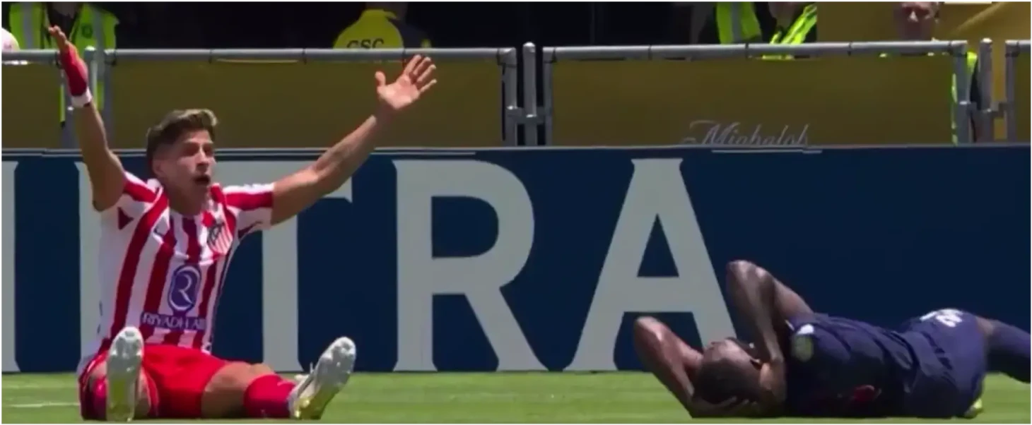 На 23-й минуте матча Клубного чемпионата мира между «ПСЖ» и «Атлетико Мадрид» Нуну Мендеш оказался в центре спорного эпизода.
