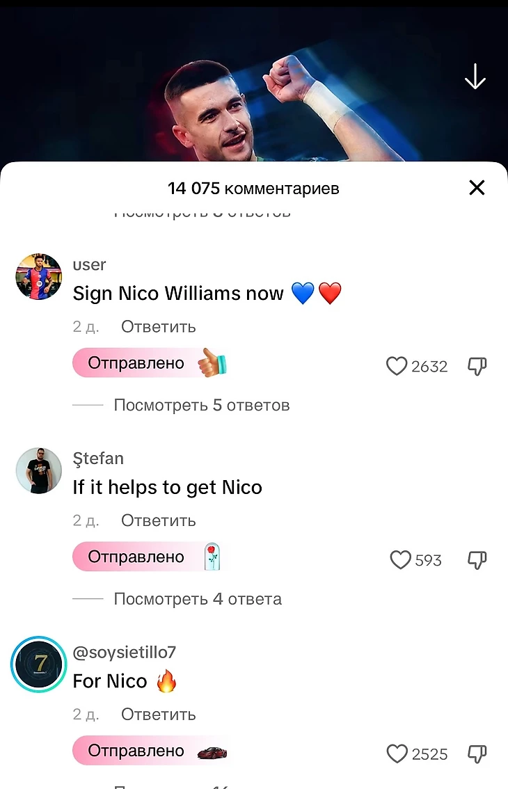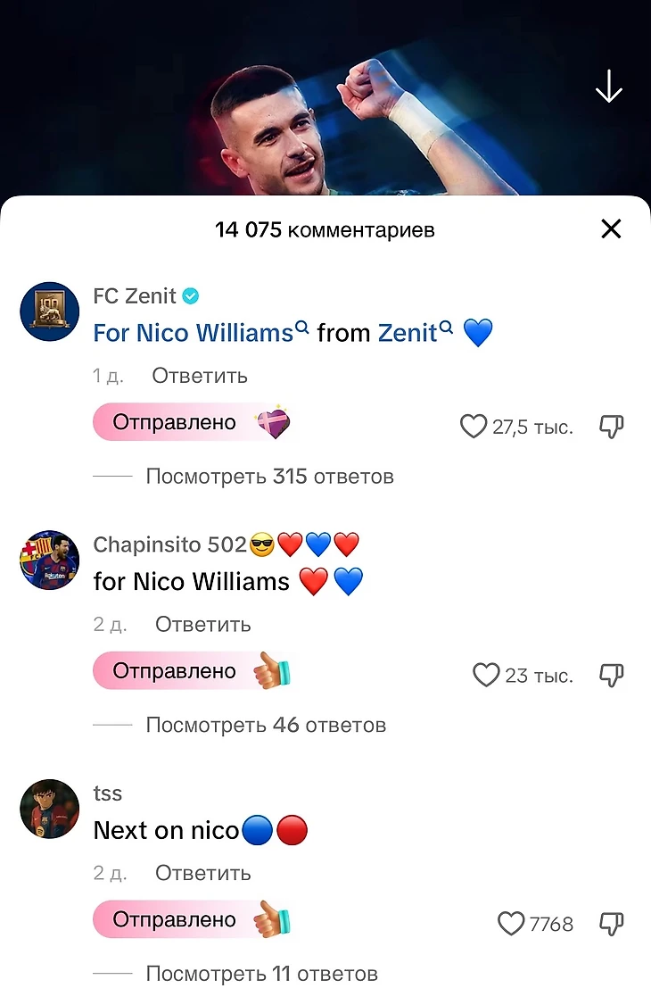 🎥 «Зенит» задонатил «Барсе» на трансфер Нико Уильямса. Фанаты «блауграны» рады – в обмен предлагают свою звезду 😁