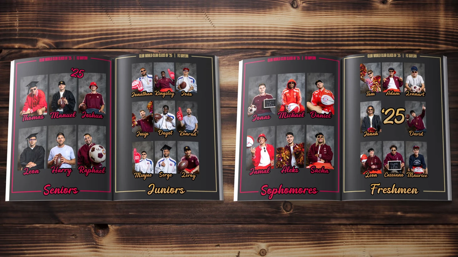 В США подопечные Венсана Компани пропитались местной культурой – «Бавария» провела фотосессию в стиле американских школьных альбомов. Мюнхенцев приодели и распределили по нескольким категориям: первокурсники (до 20 лет), второкурсники (21-24 года), юниоры (25-29 лет) и выпускники (от 30 лет).