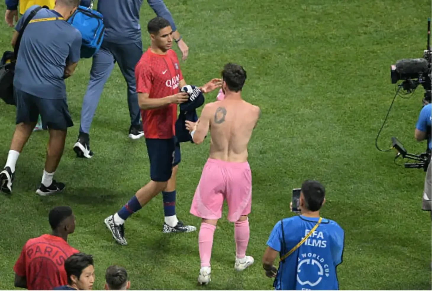 Несмотря на поражение, Месси нашел повод для улыбки после финального свистка — он тепло пообщался с бывшим одноклубником Ашрафом Хакими.