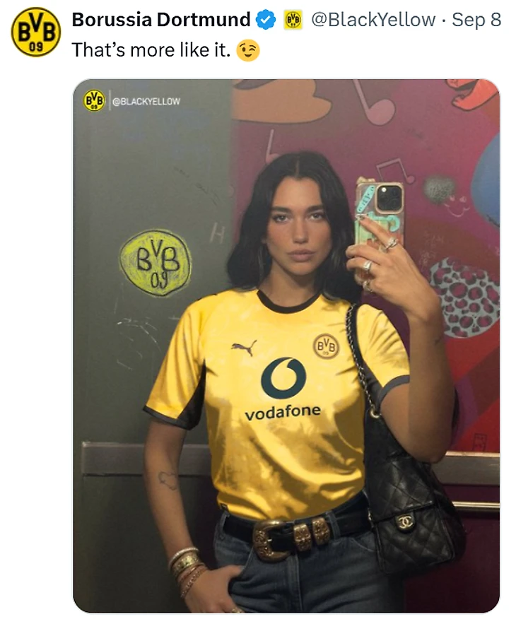 🔥 Дуа Липа захватила интернет – ее переодевают в футбольные джерси. К фанатскому тренду присоединились клубы