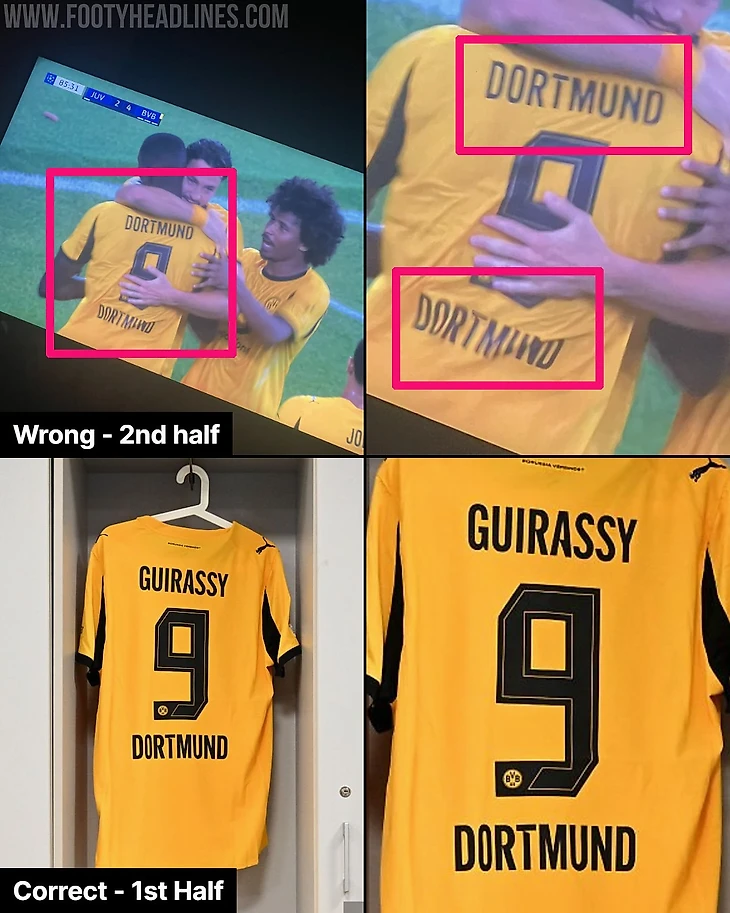 Нападающий дортмундцев Серу Гирасси вышел на второй тайм без фамилии на футболке. Ее просто не было. Зато дважды упомянут Дортмунд.