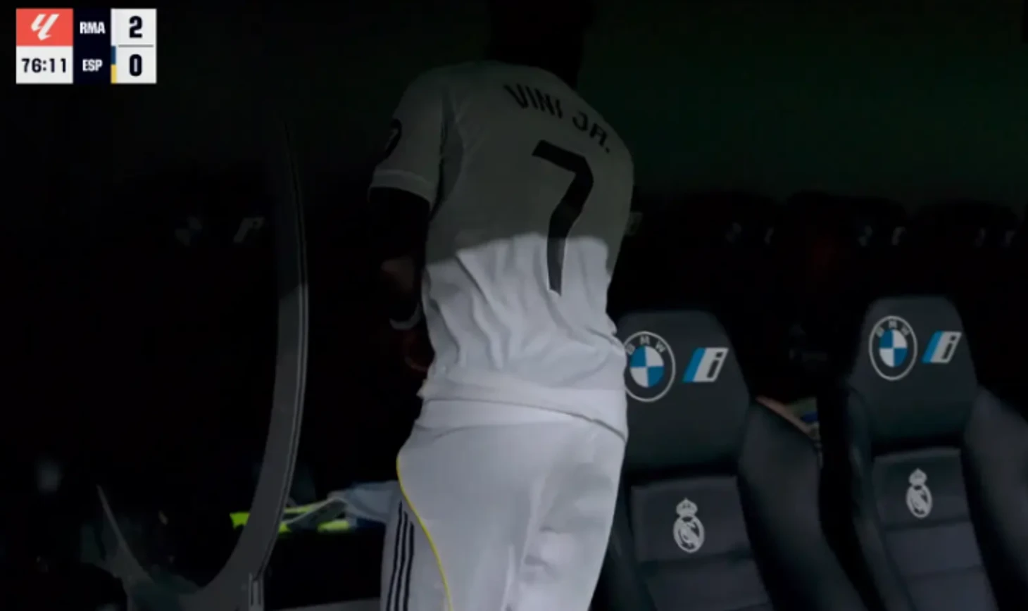После того как вместо него на 77-й минуте вышел Родриго, Винисиус сразу отправился в раздевалку. Позже он все-таки вернулся на скамейку и досматривал игру с партнерами.