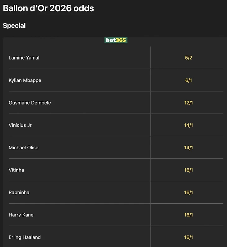 🏆 «Золотой мяч»-2026: кто фаворит? Вот котировки букмекеров