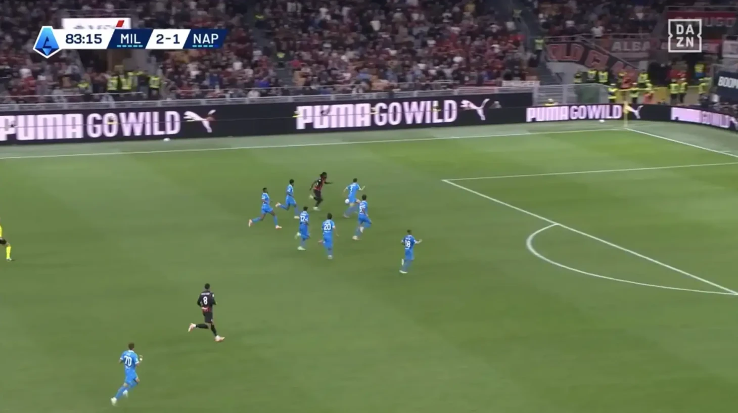 Фото из матча «Милана» с «Наполи» (2:1) взорвало сеть: Рафаэл Леау оказался в контратаке под опекой сразу семи игроков соперника.