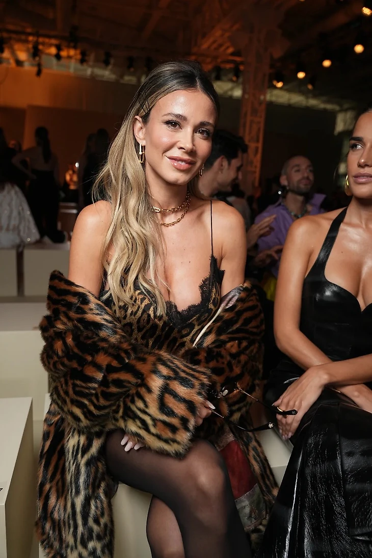 Телеведущая Дилетта Леотта порадовала поклонников платьем с глубоким вырезом и леопардовым принтом на Неделе моды в Милане.