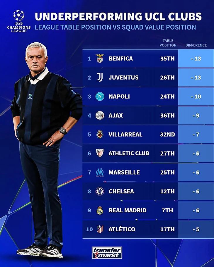 Transfermarkt хватило всего половины дистанции лиговой фазы ЛЧ, чтобы сделать первые выводы о нынешнем розыгрыше.
