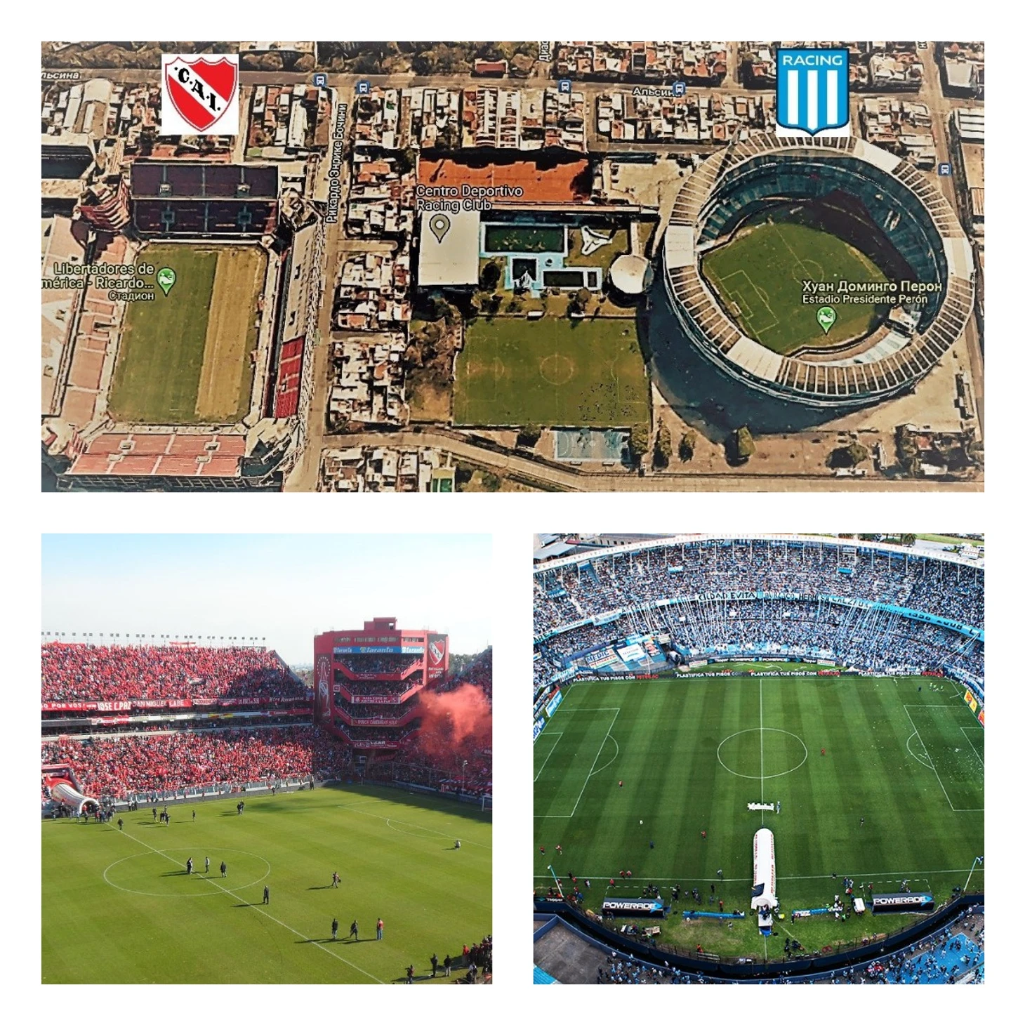 Округлая арена Ресинга называется «Президент Хуан Доминго Перон», но простые болельщики говорят El Coliseo или El Cilindro (цилиндр) 34°40'03.0"S 58°22'07.0"W – Google Карты. Стадион в впрямь имеет очень не типичную для футбольных стадионов цилиндрическую форму. Построен в 1950 году, вмещает чуть больше 50 тысяч зрителей. В 1997 году по периметру стадиона была смонтирована прозрачная крыша, добавившая арене изюминку. Кстати, стадион красуется на аватаре канала, уж очень он меня впечатляет.