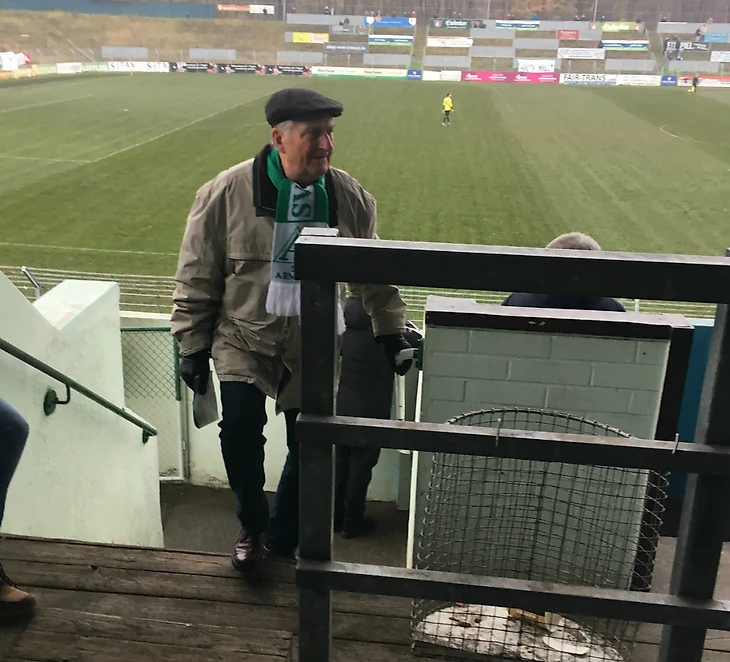 На центральной трибуне домашняя атмосфера. Основная публика – почетные дедули с шарфами «Арминии». Женщин тоже немало, причем не только в сопровождении дедуль, но и самостояльных болельщиц. Все очень учтивые и вежливые, постоянно уточняют, не закрывают ли друг другу обзор, пожимают руки и желают хорошего дня. С пятиминутным опозданием на сектор поднимается один из самых уважаемых болельщиков – не знаю, кто он, но поздоровался он, кажется, с каждым (кроме меня). Откуда-то сверху запахло травой.