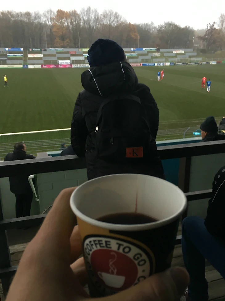 Публика смотрит футбол краем глаза под пиво или глинтвейн, чтобы проветрить утяжеленную пятничными и субботними вечерами голову и подготовиться к вечерним матчам бундеслиги. На события на поле реакция есть, но скорее ироничная – великих свершений от ребят на газоне никто не ждет, при этом неуважения или оскорблений с трибун тоже нет. В итоге все это выглядит настолько по-немецки органично, что даже удивительно. Все причастные к этому футбольному матчу понимают, зачем они тут находятся и как тут оказались – от футболистов, которые понимают, что им никогда не заиграть в бундеслиге, до студентов, которые проверяют билеты на входе на стадион за 13 евро в час.