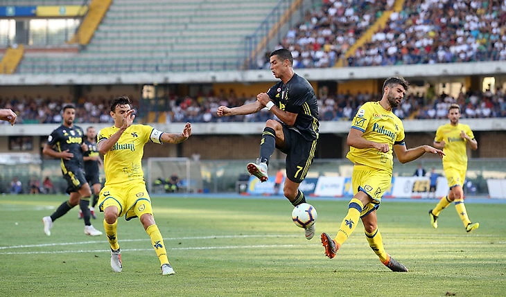 Ставки на то, что португалец забьет первым в матче принимали со коэффициентом 3,2, не слишком учитывая, что за 17 лет профессиональной карьеры Роналду ни разу не забивал в чемпионате первым – ни в Португалии, ни в Англии, ни в Испании. Да и дебют без голов – нормальное дело для Криштиану, хотя нападающий, встроенный Массимилиано Аллегри в схему 4-2-3-1, восемь раз пробил по воротам (больше, чем кто-либо на поле, 4 – в створ). Однако 39-летний кипер «Кьево» Стефано Соррентино был в порядке.