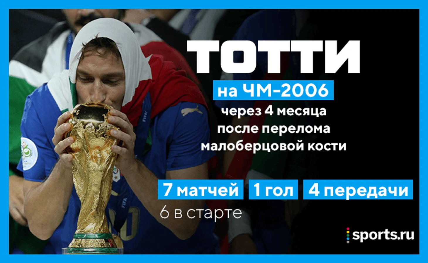 «В июне ты сыграешь. Не спрашивай как». Тотти выиграл ЧМ после перелома, с 13 винтами в ноге