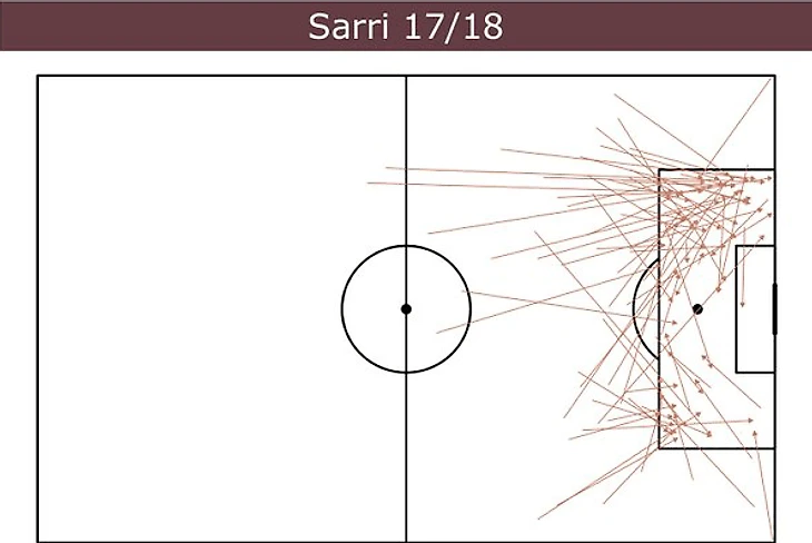 «Наполи» стал делать больше диагональных передач, а большинство пасов в финальной стадии атак теперь направлены в центр штрафной, а не на левый край, где у Сарри действовали Гамшик и Инсинье.
