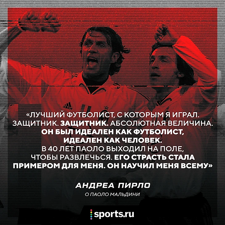 О важности Паоло для команды в своей книге писал Андреа Пирло: «Лучший футболист, с которым я играл (вместе Пирло выступали за «Милан» с 2001-го по 2009-й, ) – Мальдини. Защитник. ЗАЩИТНИК. Абсолютная величина. Он был идеален как футболист, идеален как человек. В 40 лет Паоло выходил на поле, чтобы развлечься. Его страсть стала примером для меня. Он научил меня всему. Как побеждать и проигрывать, как забивать и делать голевые пасы, как сидеть в запасе, страдать, радоваться, играть, вести себя, злиться, прощать, подставлять другую щеку и давать пощечину, быть самим собой, а иногда – кем-то другим. Молчать, говорить, решать, доверять, закрывать глаза, смотреть в оба, выбирать момент, следовать инстинктам, быть эгоистом и рулить, меняя направление и указывая путь. Мальдини отдал мне часть себя. Какой галстук надеть? Как располагаться на поле? Как вести себя за столом? За советом по любому поводу я шел к Паоло».
