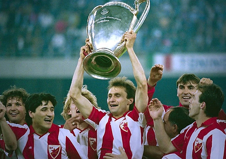 Синиша Михайлович (слева) в «Црвене Звезде» (1991-й год), празднует победу в Кубке чемпионов