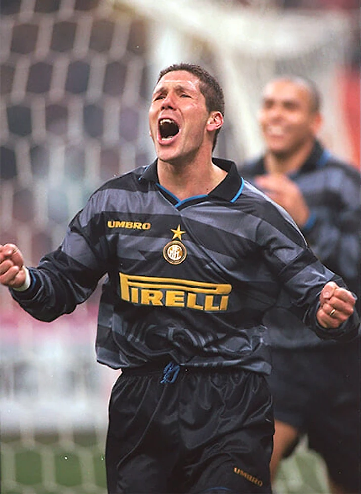 Футболка сезона-1997/98 c горизонтальными полосами, в которой «Интер» выиграл Кубок УЕФА.