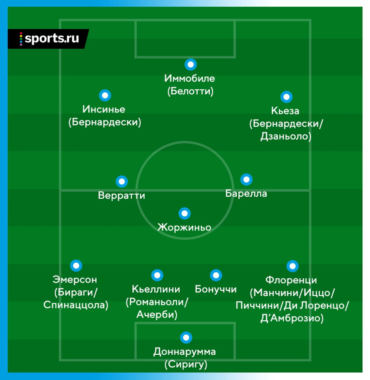 Даже Джанлуиджи Доннарумме не гарантировано место в старте – Сальваторе Сиригу из «Торино» сыграл те же четыре матча. У Лоренцо Инсинье 270 минут в отборе из 720, у Федерико Кьезы – 306, у Федерико Бернардески – 403, за место в центре нападения борются Чиро Иммобиле (235) и Андреа Белотти (286). 36-летний Фабио Квальярелла сыграл в отборе столько же, сколько юный Дзаньоло (128).