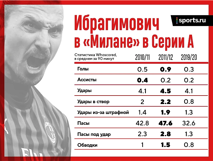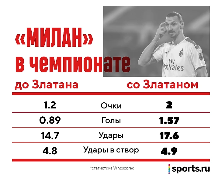 В шести матчах Серии А, в которых Ибра вышел в основе, «Милан» забил десять голов. С момента его перехода у команды Пиоли одно поражение в 11 матчах во всех турнирах и шесть побед – столько же, сколько за всю первую часть сезона.