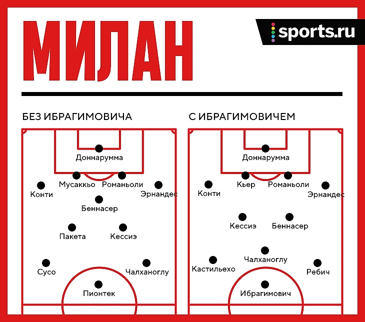 Кшиштоф Пионтек к тому моменту забил четыре гола, Хакан Чалханоглу – два, Сусо и Рафаэл Леау – по одному. Атака «Милана» не работала, и Ибрагимовича пригласили не только для поднятия боевого духа – Златан должен был делать разницу на поле. Руководство клуба было настолько уверено в 38-летнем шведе, что Пионтека продали «Герте», фактически признав, что судьба сезона зависит от Ибры. Или он заиграет, или «Милан» так и останется во второй десятке.