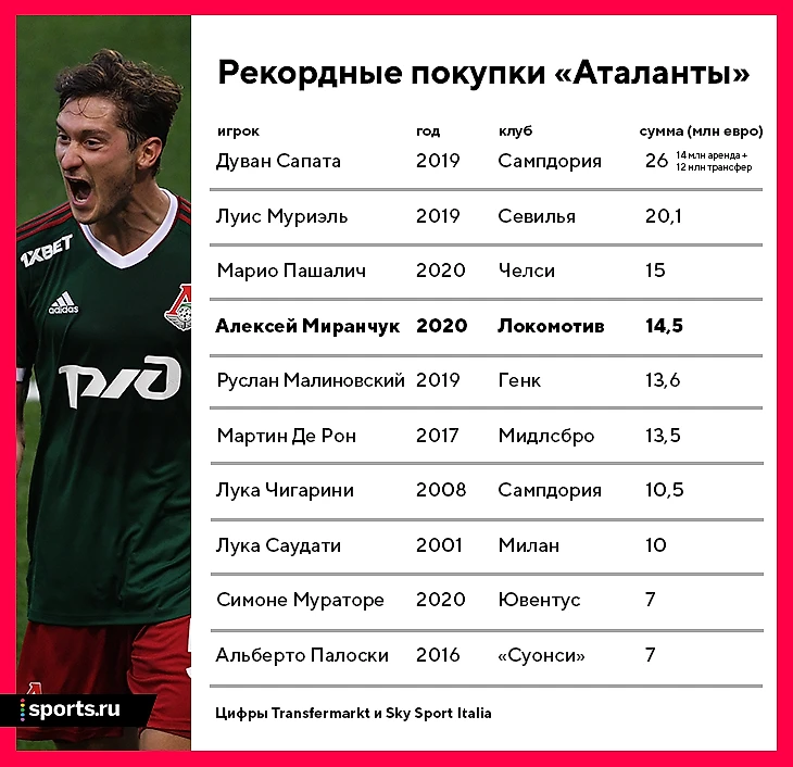 За 6 сезонов «Аталанта» заработала на трансферах 85 млн: продают воспитанников и перепродают ноунеймов. В Миранчука пока вложились сами