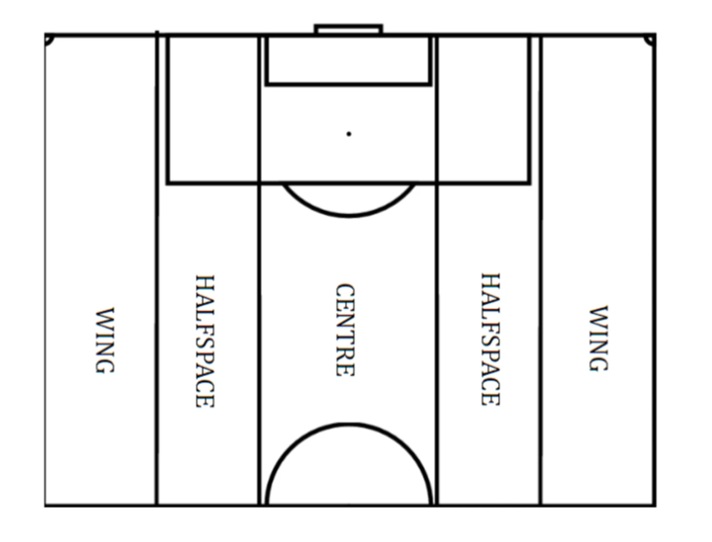 В фазе атаки 4-6 игроков должны располагаться по ширине поля и стараться занять все пять зон, вне зависимости от схемы.