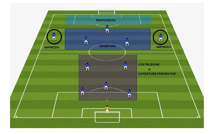 За счет розыгрыша через «третьего игрока», по словам Андреа, команде не нужно большое численное преимущество на своей половине поля – в такой ситуации больше игроков находятся за линией мяча. Очень важны действия вратаря – он максимально вовлечен в начало атаки, должен выходить за пределы штрафной и хорошо играть в пас.