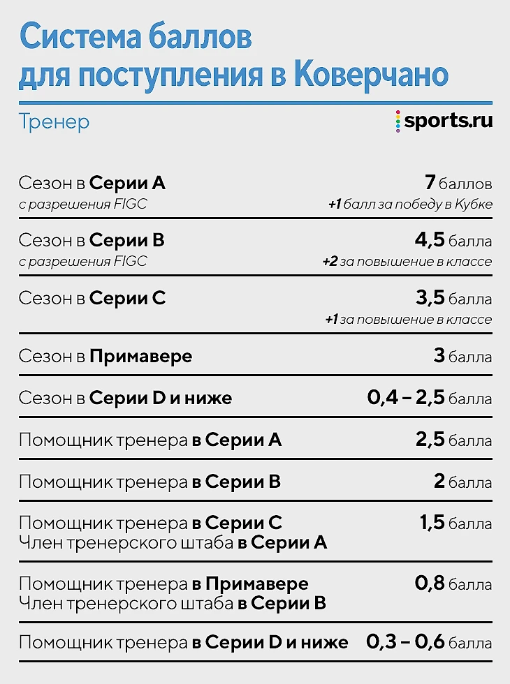 Коверчано – легендарная школа тренеров. В теории поступить может любой итальянец, но иногда не хватает даже сотни матчей в Серии А