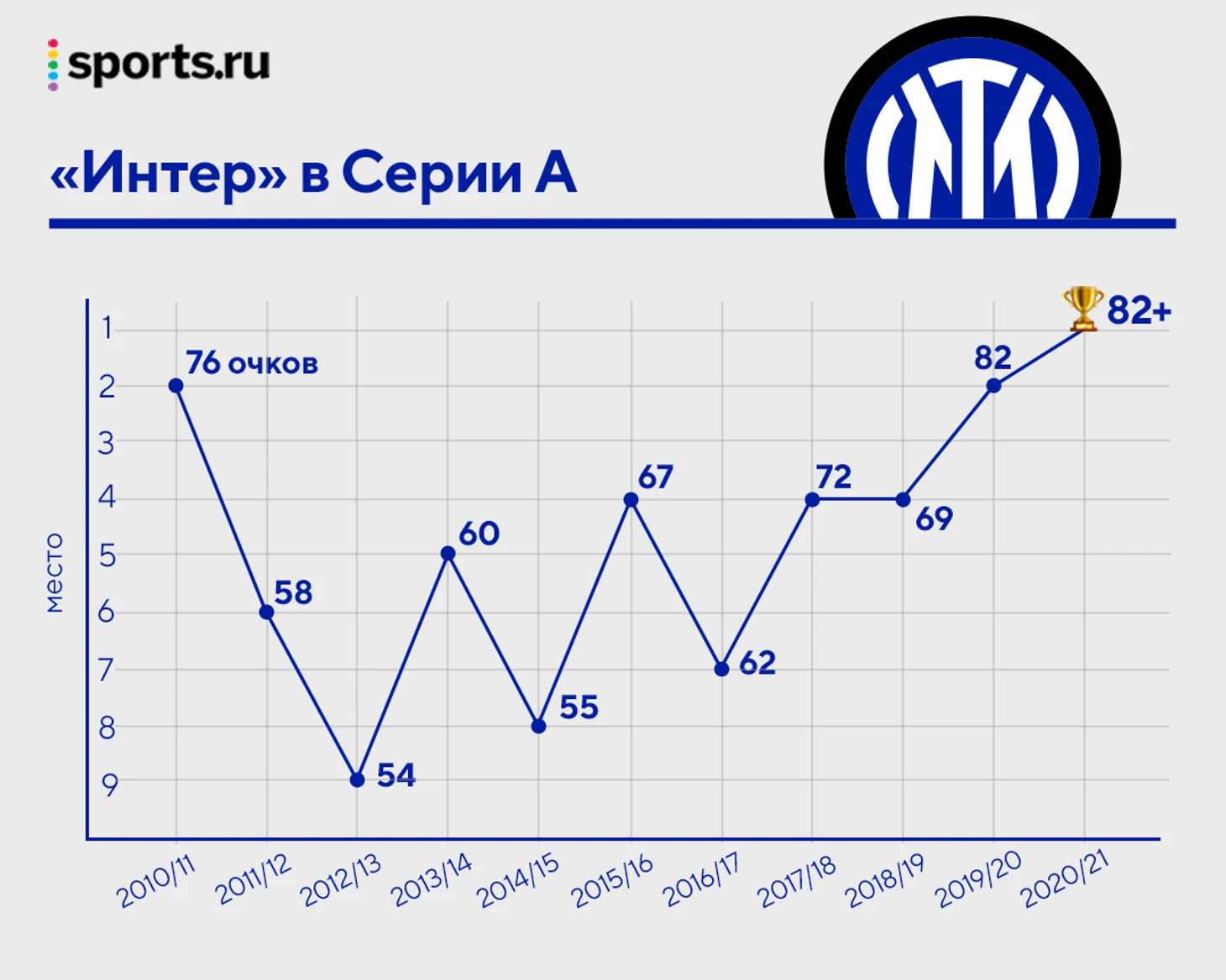 Проект продолжается – китайцы готовы инвестировать (пусть и с ограничениями в условиях пандемии) и привлекать новых спонсоров, а задача Маротты, Аузилио и Конте – сделать это чемпионство не конечным пунктом, а точкой отсчета. «Антонио сказал, что наша победа в Серии А – произведение искусства, я с ним согласен. – говорит Маротта. – Но уже пора мечтать о следующем скудетто».