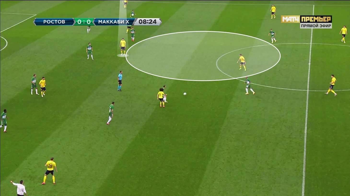 Команда только завладела мячом, а Шомуродов уже готов делать нужный рывок в любимую зону (между правым и центральным защитником соперника). Разумеется, соперник в этот момент еще не успел принять оборонительную схему: