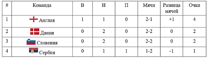 Ну а для того, чтобы у наших любителей футбола было прикрытие для проноса флага России на стадионы Германии в матчах плей-офф, сербам надо кровь из носу выиграть Данию в очном противостоянии. В таком случае будет второе место при непроигрыше Англии, при победе Словении — третье место с 4 очками.