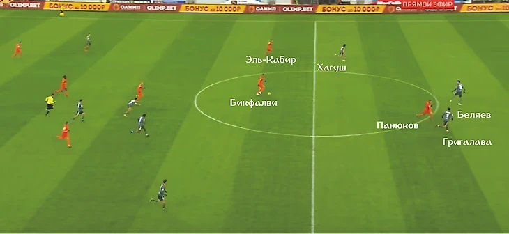 Кажется, будто понятно кто кого держит, но Беляев и Хагуш держатся от Бикфалви и Эль-Кабира на почтительном расстоянии, давая им свободной подойти к штрафной.